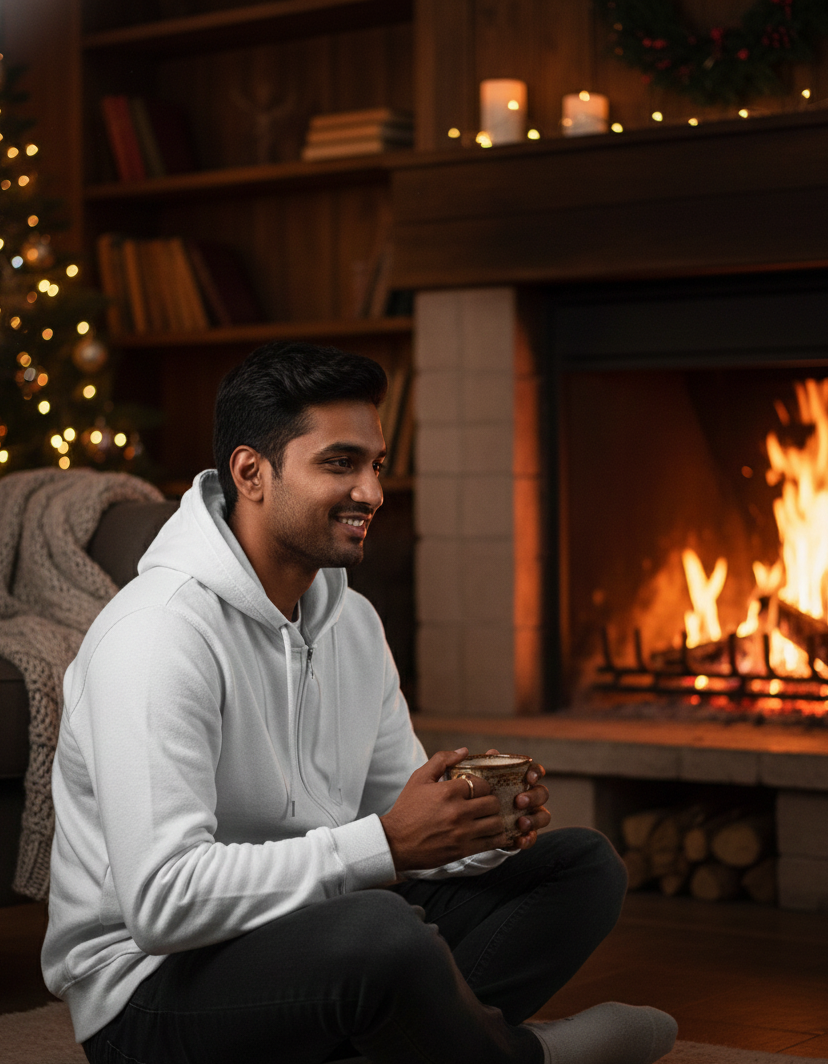 Tevayaa Classic 400 GSM White Male Zip Hoodie